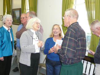 KCHS Membership Chairman Esther McCaskill, who helped arrange the March tour of her hometown of Bethune, explains program features to interested guests mingling at the Bethune Woman’s Club before the tour.